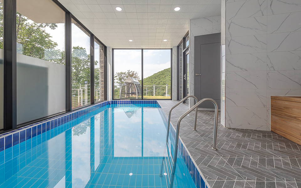 총 공간 300평, 건평 65평형으로 국내에서 독보적인 독채풀빌라 공간을 자랑합니다.가로 16m, 세로 7.2m, 폭 120cm의 대형 수영장을 보유하고 있어 어른과 아이가 함께 즐길 수 있는 완벽한 공간입니다.
