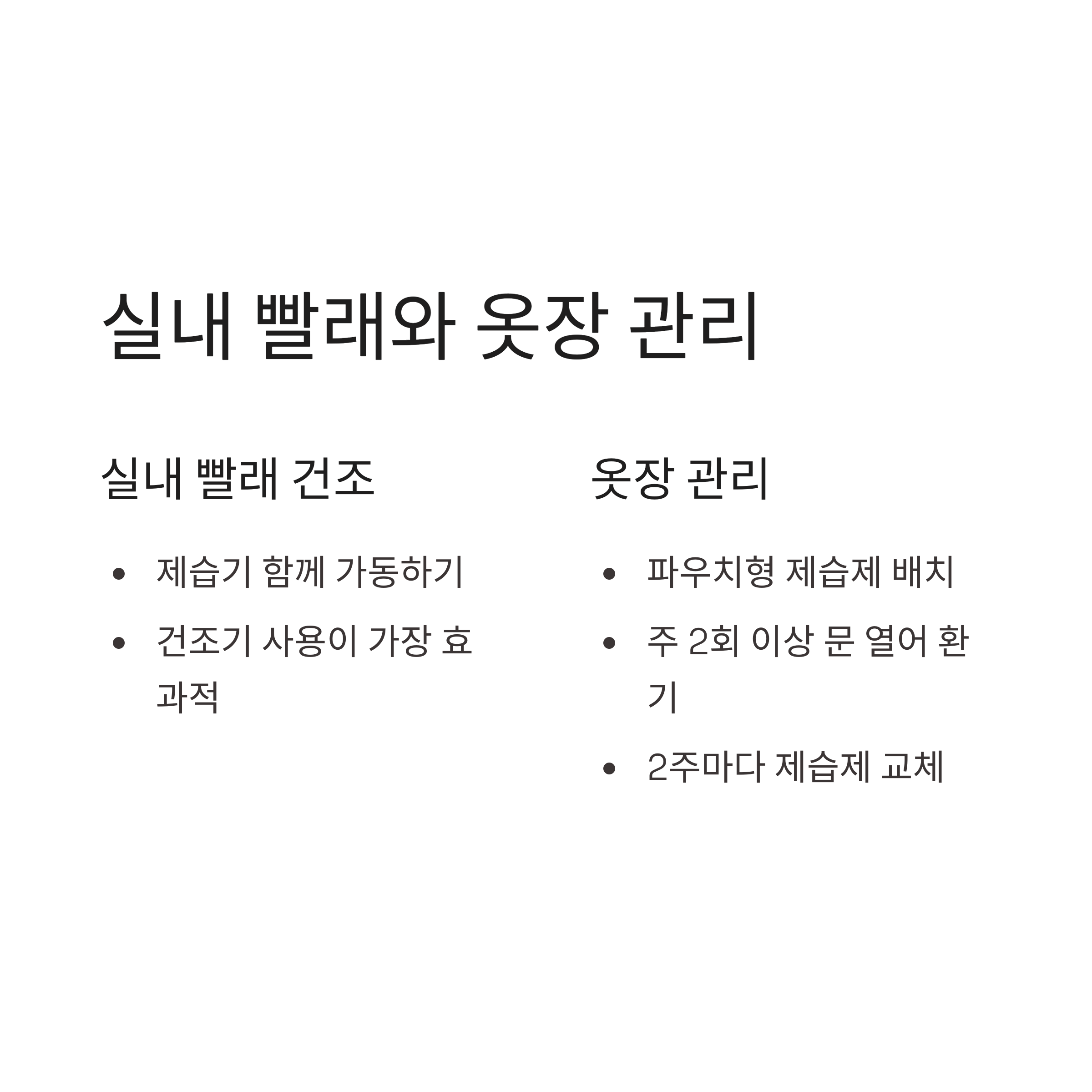 - 옷장 문은 주 2회 이상 열어 환기