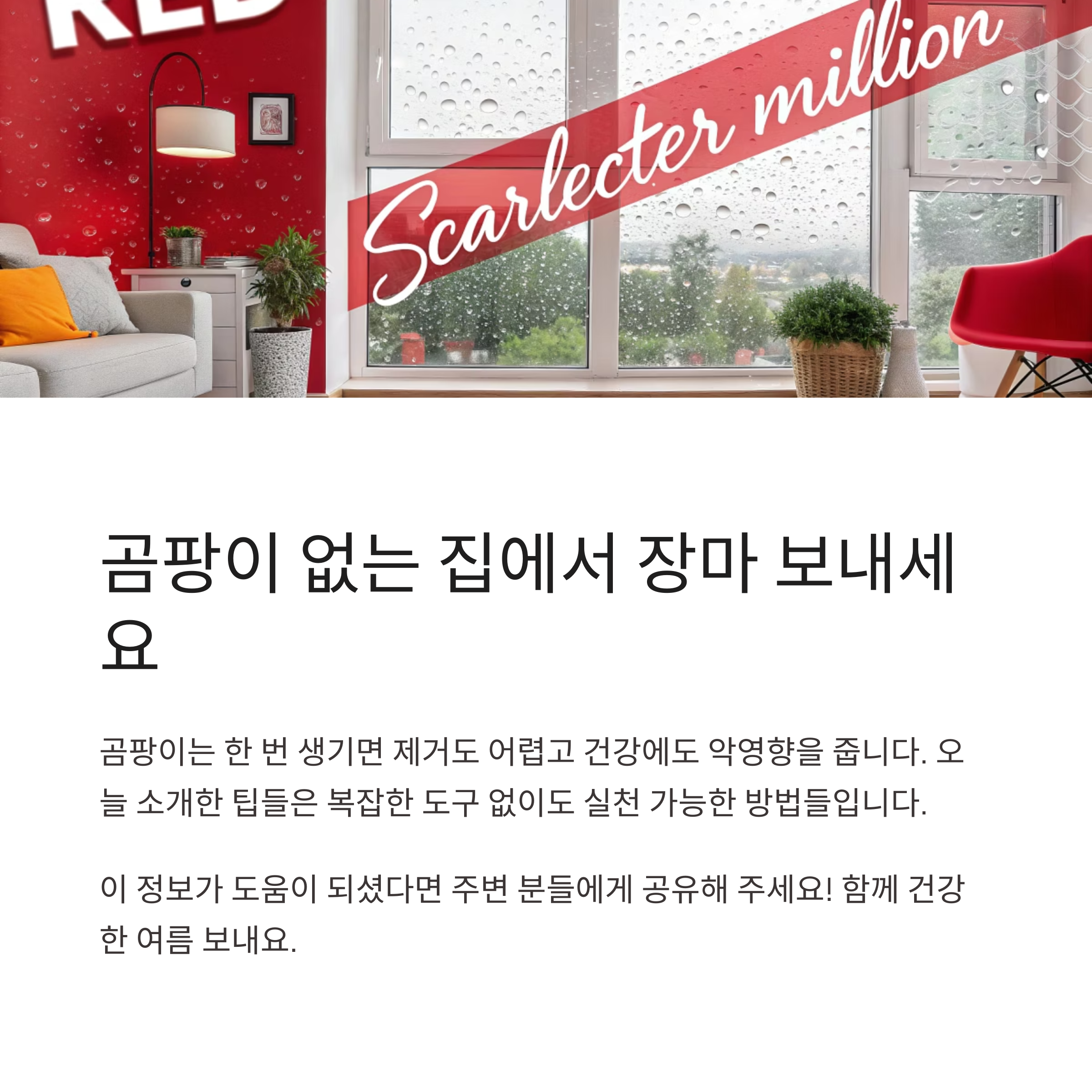 무심코 지나친 실내 습기, 단 7일이면 곰팡이로 번질 수 있다는 사실, 알고 계셨나요? 장마 시작 전에 반드시 확인해야 할 6가지 방어 전략을 소개합니다.안녕하세요. 본격적인 장마가 다가오면