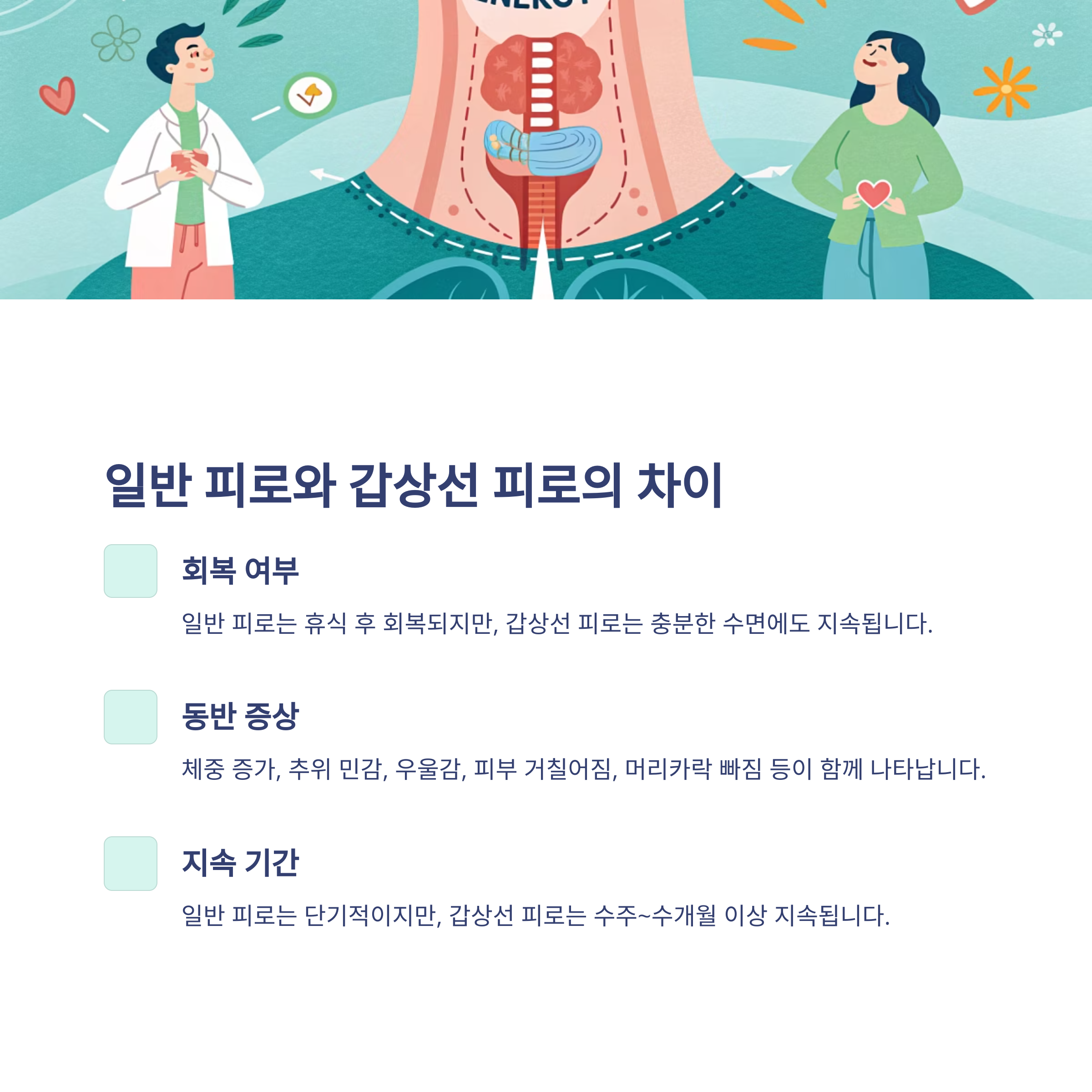 | 구분 | 일반 피로 | 갑상선 피로 |