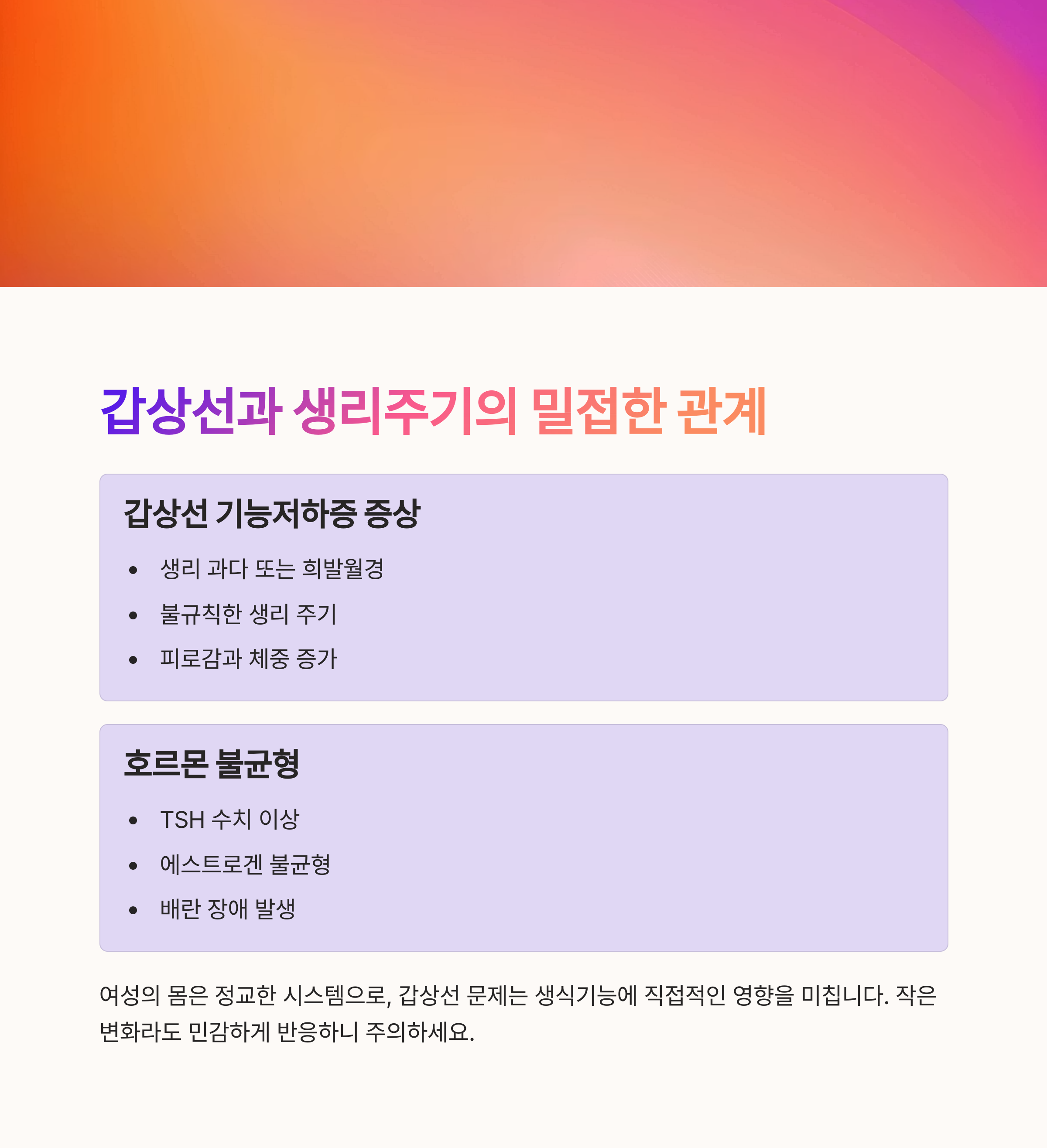 생리불순갑상선, 여성호르몬불균형, 갑상선기능저하증증상, 생리주기이상, 배란장애원인, 갑상선호르몬검사, TSH수치이상, 자궁과갑상선, 생식기와내분비계, 여성건강관리팁