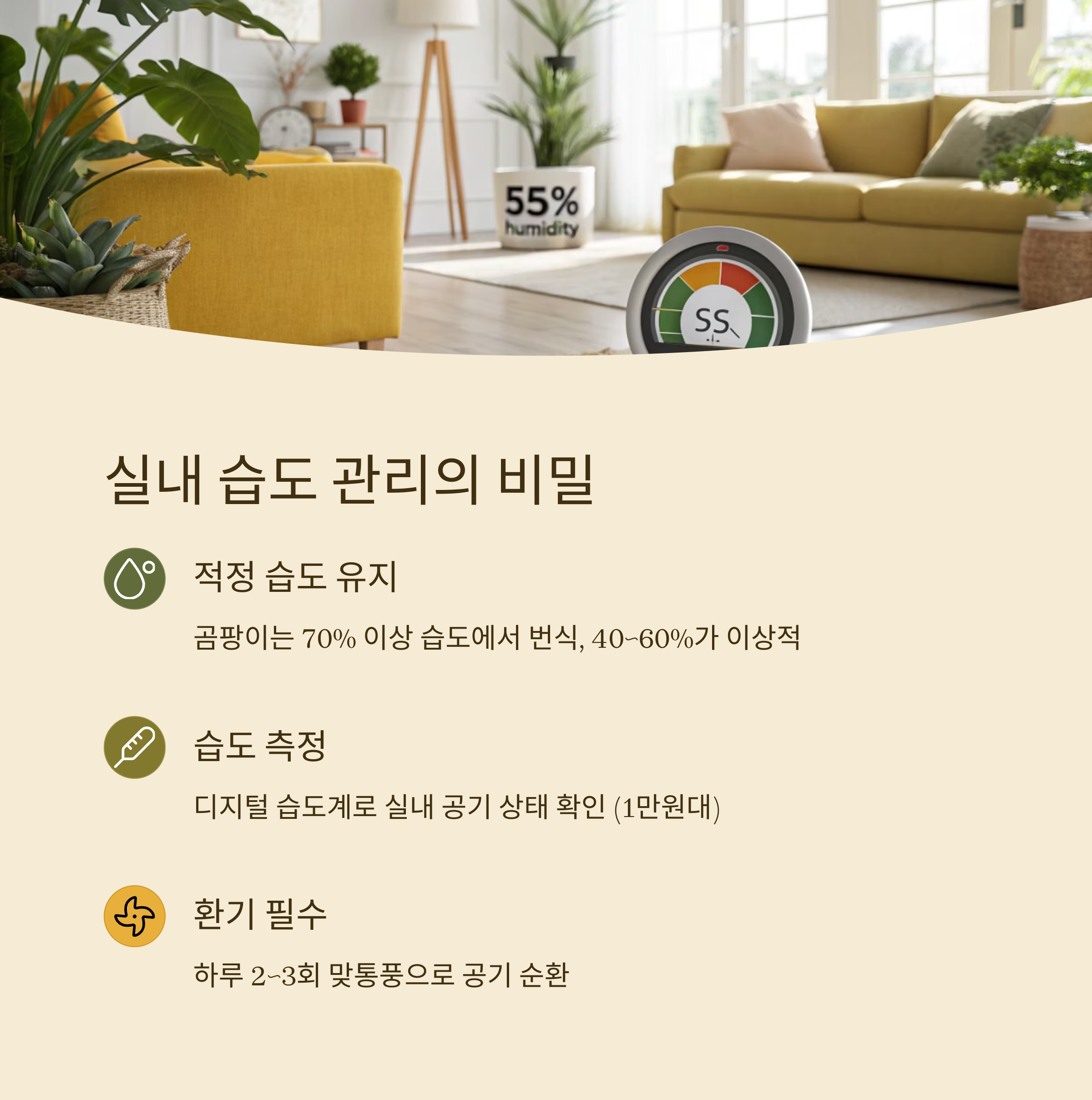곰팡이는 70% 이상의 습도에서 활발하게 번식합니다. 따라서 실내 습도를 40~60%로 유지하는 것이 이상적이죠. 습도계를 활용하면 우리가 느끼지 못하는 공기의 상태를 수치로 확인할 수 있어요. 시중에 판매되는 디지털 습도계는 1만원대부터 구할 수 있으며, 앱 연동이 가능한 스마트 습도계도 꽤 유용합니다. 다음 표는 각 습도 수준에 따른 대응 가이드를 정리한 내용입니다.