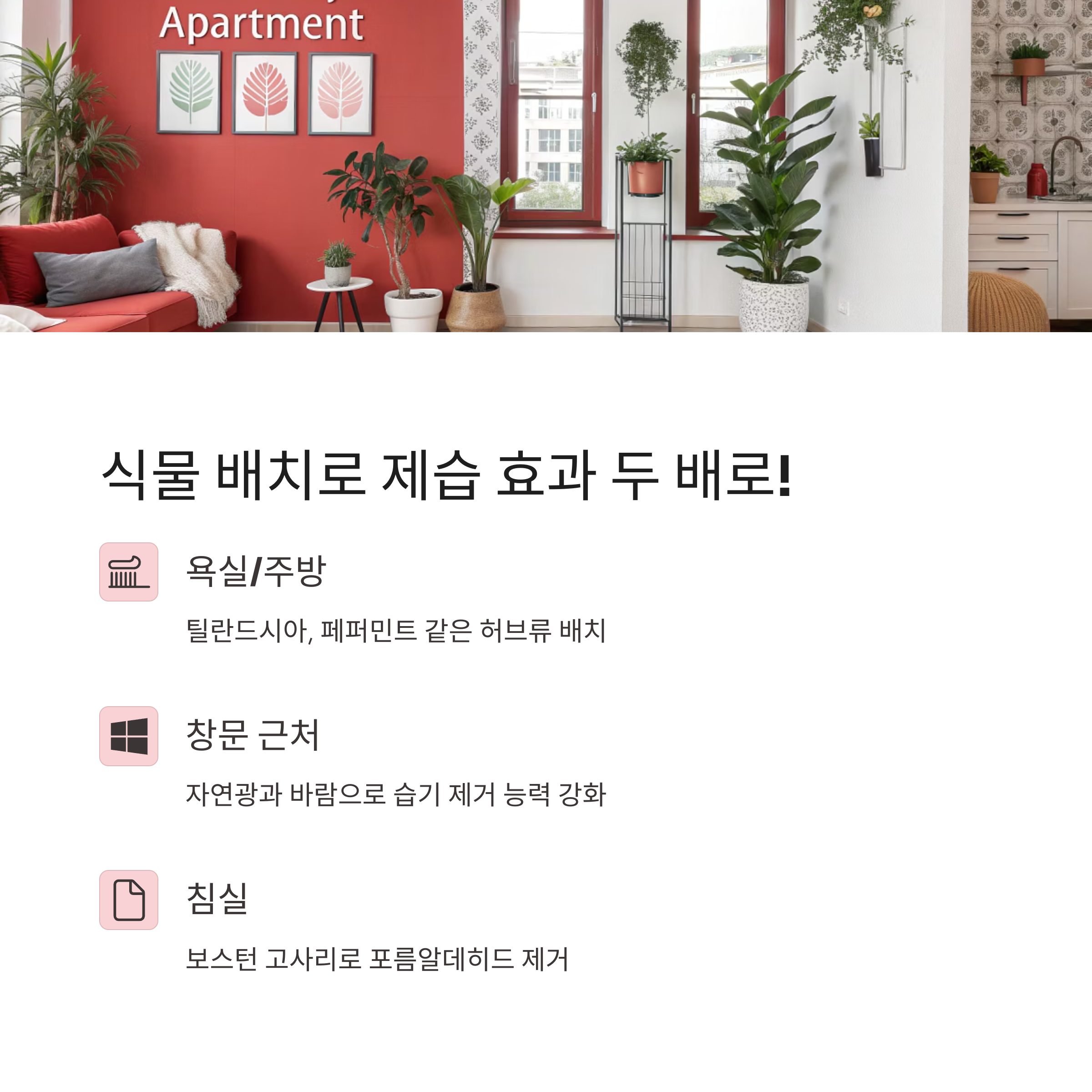 - 통풍이 잘 되는 곳에 배치해 곰팡이 예방