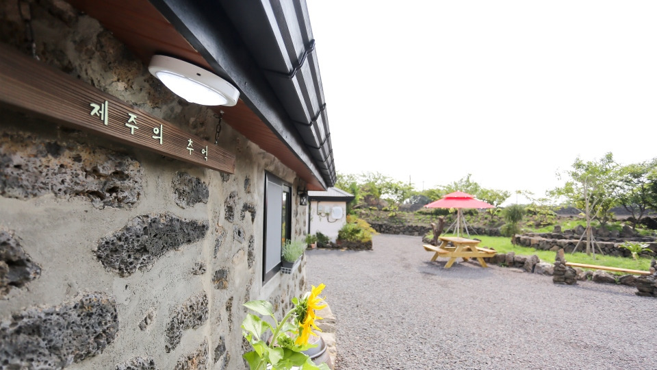 제주 전통가옥을 모티브로 한 독채 형태로, 전용 미니풀과 가든, 공용 야외풀장까지 갖춘 곳입니다. 객실 내부는 통유리창으로 바다와 오름 풍경을 거실 안으로 끌어들여 사진처럼 잔잔한 힐링을 선사합니다.