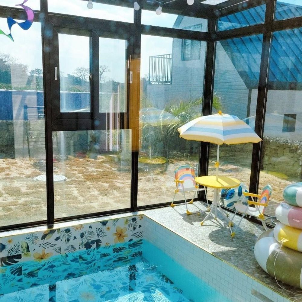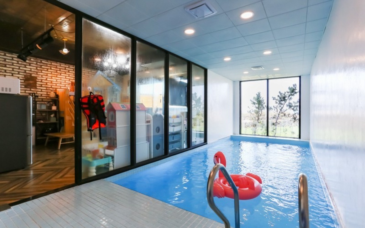 • 객실 구성: 복층 독채(2개 침실·2거실·2욕실), 실내 풀장(3×4m·수심0.8m)