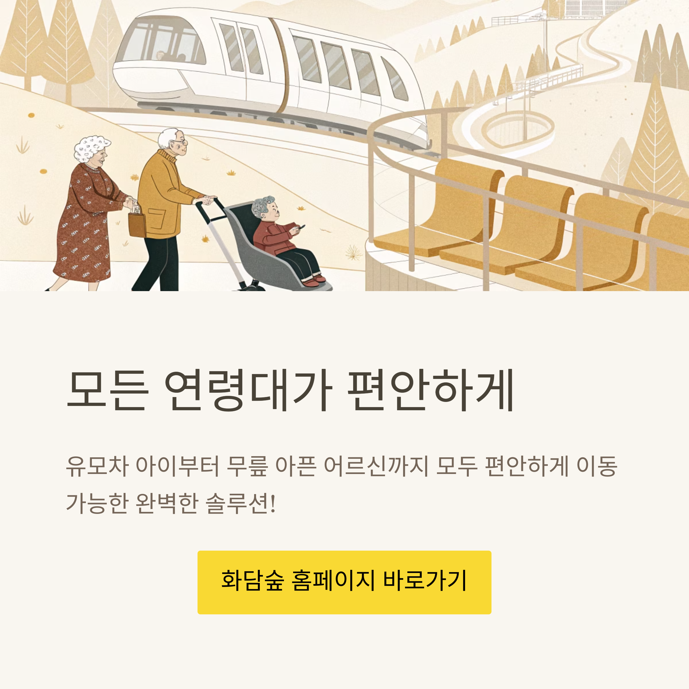 가족 나들이의 큰 고민 중 하나는 '모든 연령대가 불편함 없이 이동할 수 있을까?'입니다. 화담숲 모노레일은 바로 이 문제를 해결해 줍니다. 유모차를 탄 아이, 무릎이 아픈 부모님 모두 편안하게 이동이 가능하며, 완만한 경사를 천천히 오르며 숲 속을 감상하는 그 순간은 하나의 여정이 됩니다. 특히 노약자와 함께하는 가족 여행 시, "걷기 힘든 구간을 어떻게 할까?"라는 걱정을 말끔히 지워 줍니다.