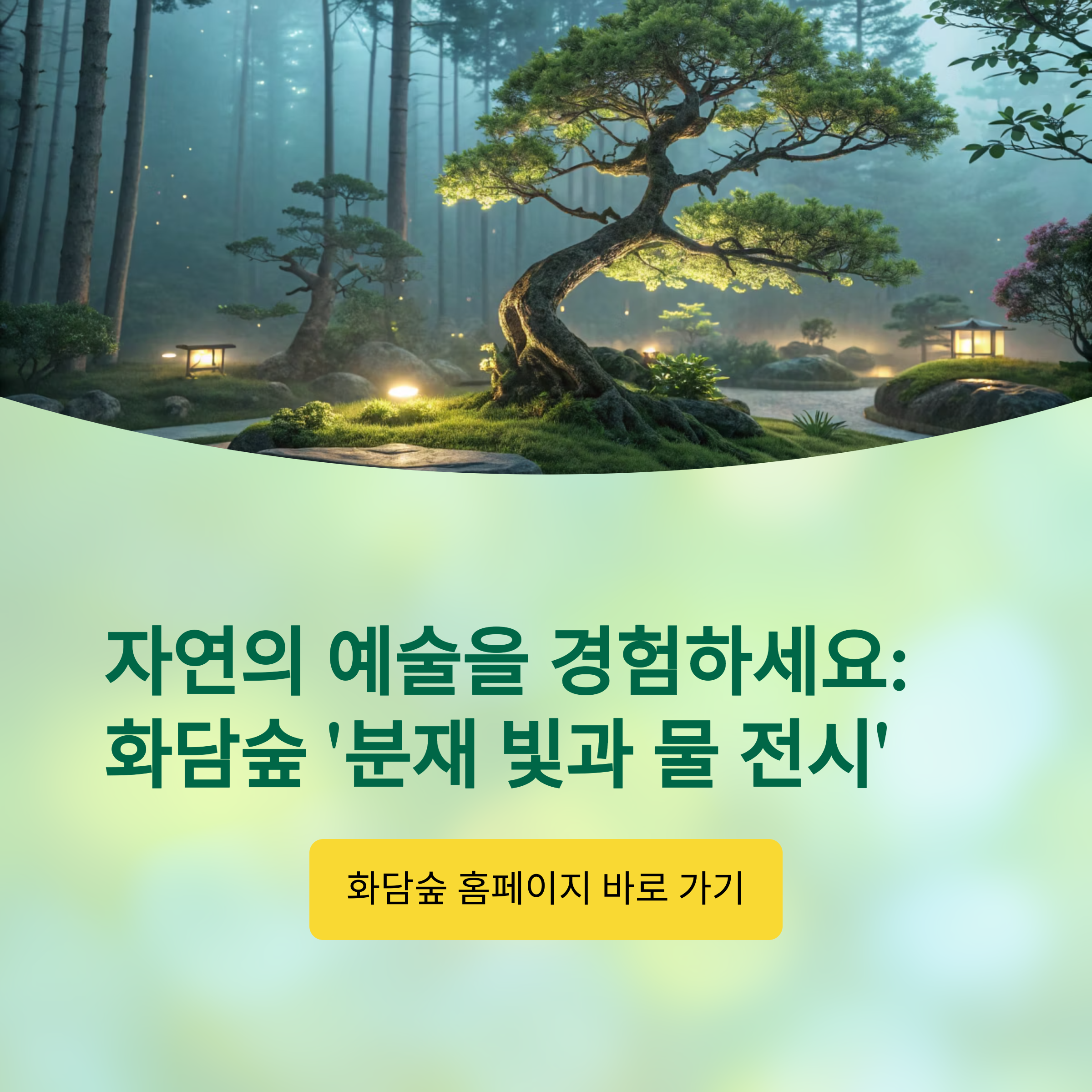 화담숲에서 열리는 '분재 빛과 물 전시'는 단순한 전시가 아닌 감각과 감성, 그리고 자연과 인간의 교감을 느낄 수 있는 독특한 경험입니다. 이 글에서는 화담숲 분재 전시에 대해 처음 방문하는 분들도 이해하기 쉽게, 전시 일정과 하이라이트, 관람 팁 등을 상세히 소개해드립니다.