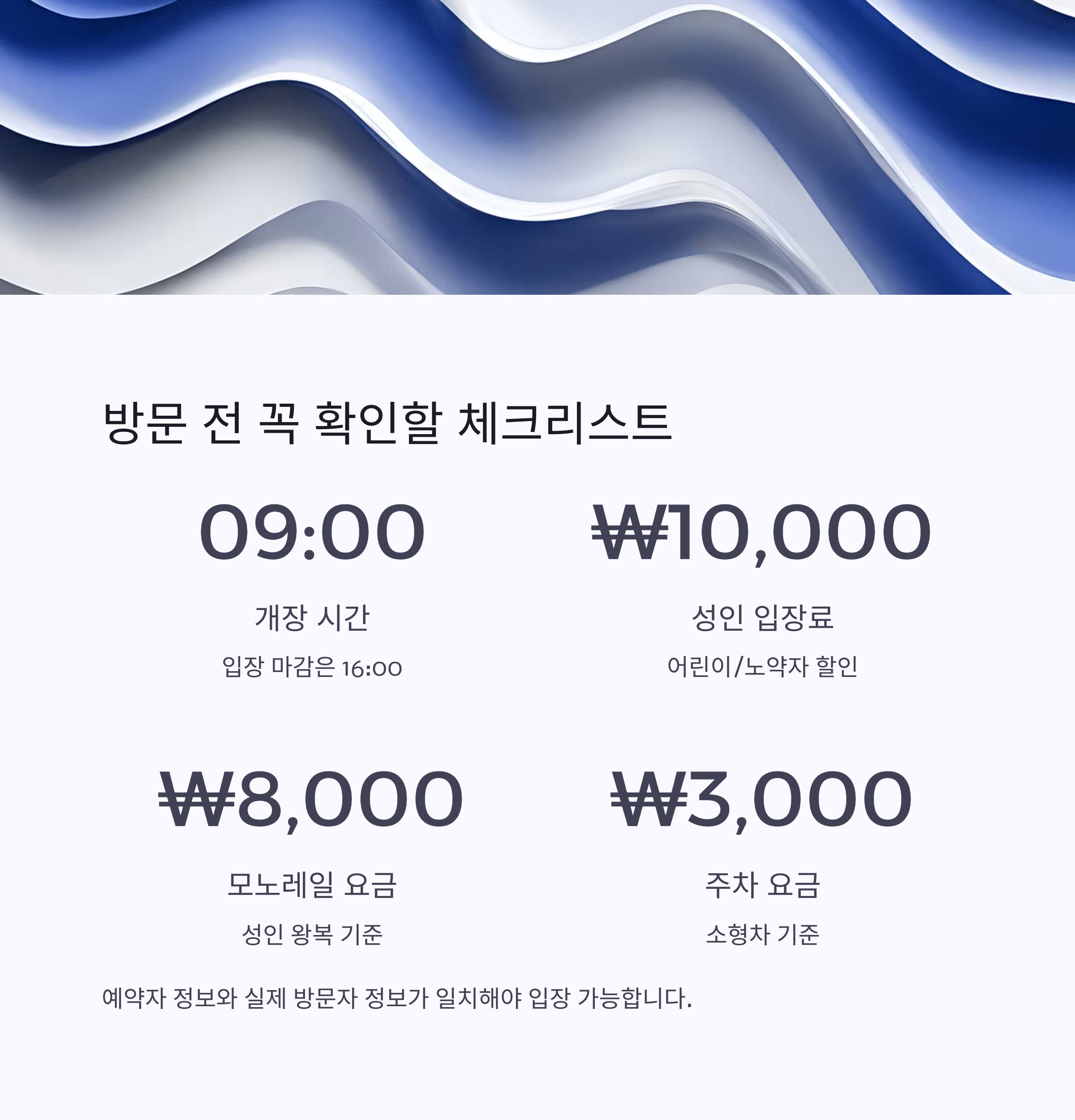 방문 전에 아래 내용을 체크하면 후회 없는 나들이가 될 수 있습니다.