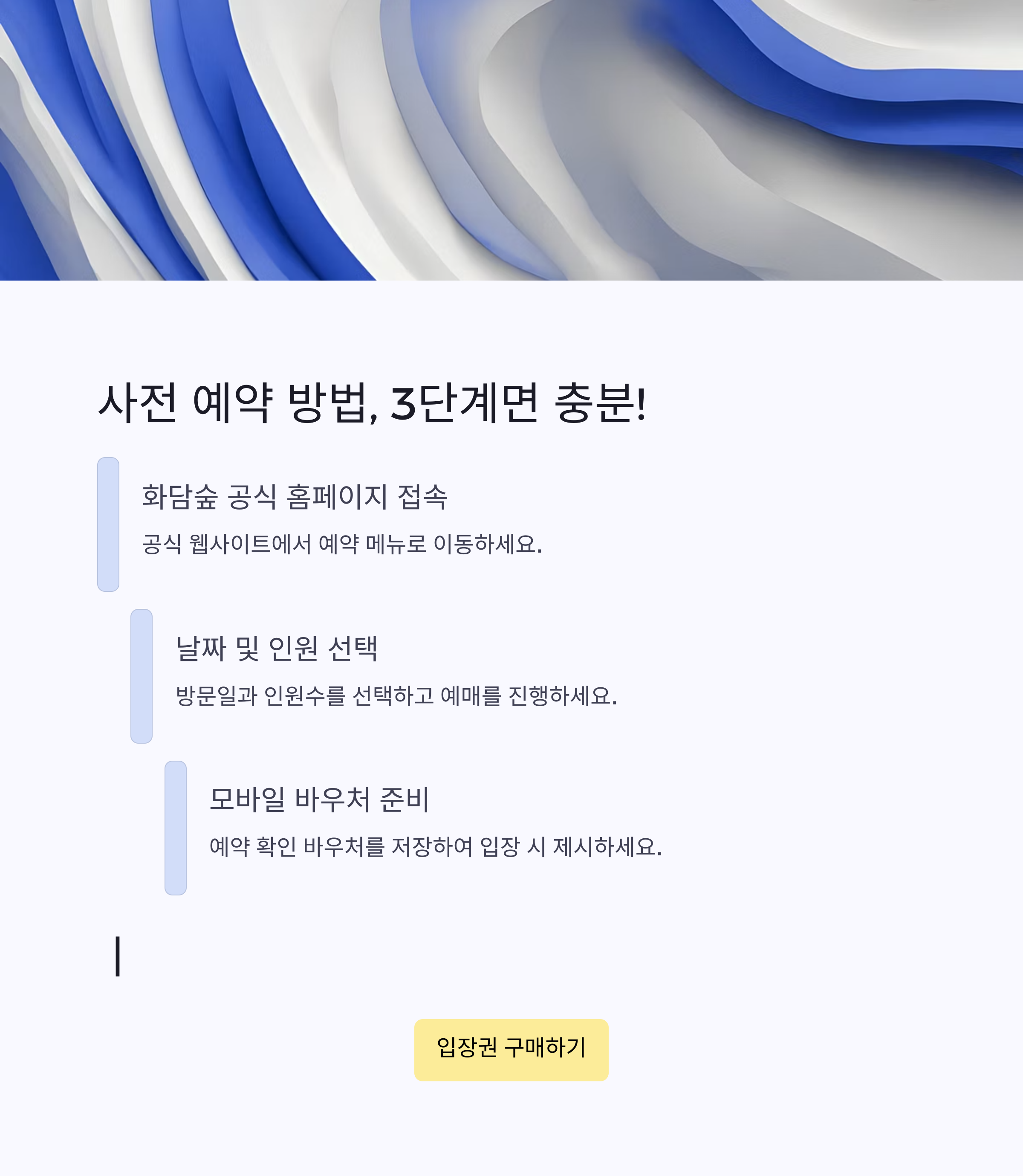 사전 예약은 화담숲 공식 홈페이지 또는 일부 제휴 플랫폼을 통해 가능하며, 예매는 최소 2~3일 전에는 진행해야 여유가 있습니다. 아래 표를 통해 예약 절차를 정리해 드리겠습니다.