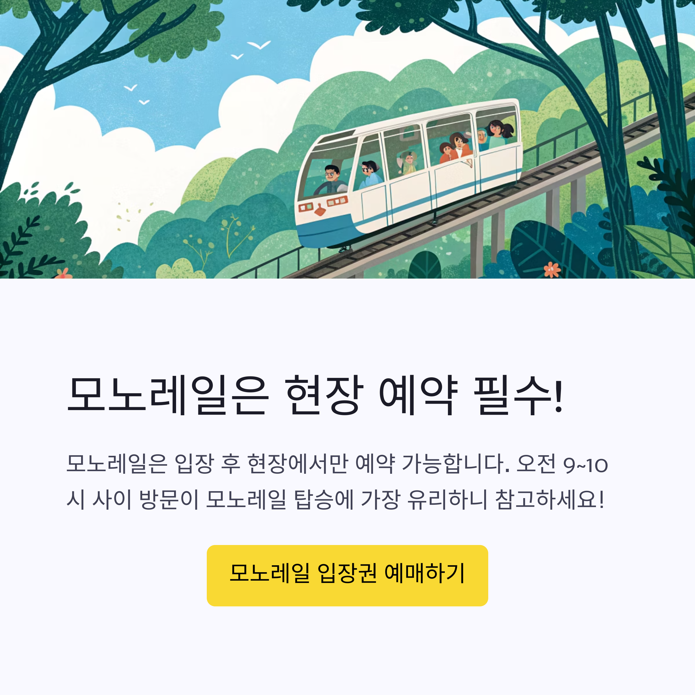 | 모노레일 요금 | 성인 왕복 8,000원 / 탑승권은 별도 구매 |
